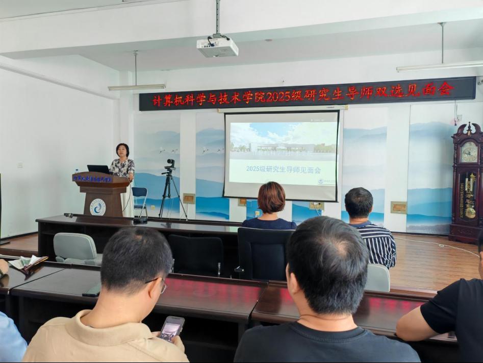 9月5日,学院2025级研究生导师双选见面会在严肃而活泼的氛围中举行,标志着“开学第一课”进入学术引导核心环节。学院领导、全体研究生导师现场参会,科教融合联合培养的外聘导师通过腾讯会议远程参与,会议由学院科研副院长李莉教授主持。